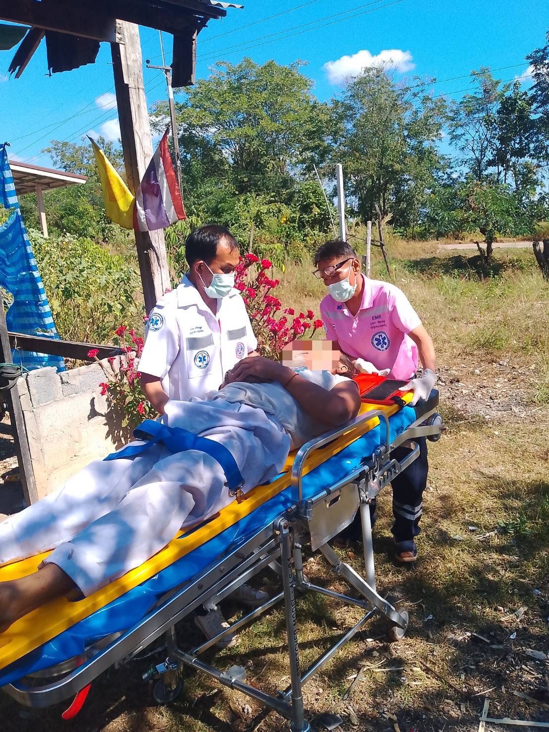 ศูนย์บริการแพทย์ฉุกเฉิน อบต.นาทราย ได้รับแจ้งจากศูนย์สั่งการให้ออกรับผู้บาดเจ็บอุบัติเหตุจาก มีดตัดอ้อ�...