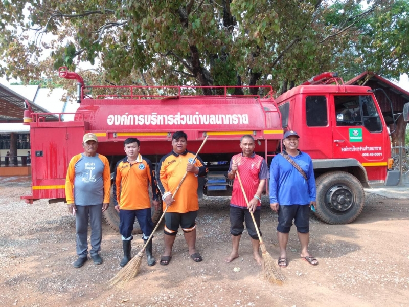 งานป้องกันฯ นำรถดับเพลิงออกให้บริการน้ำฉีดล้างทำความสะอาด ลานวัดศรีสมพร บ้านนานกหงส์