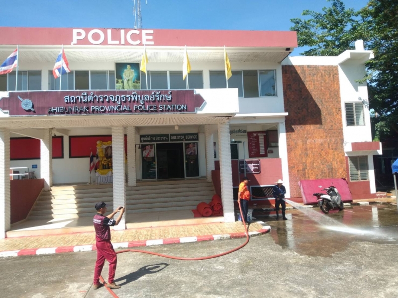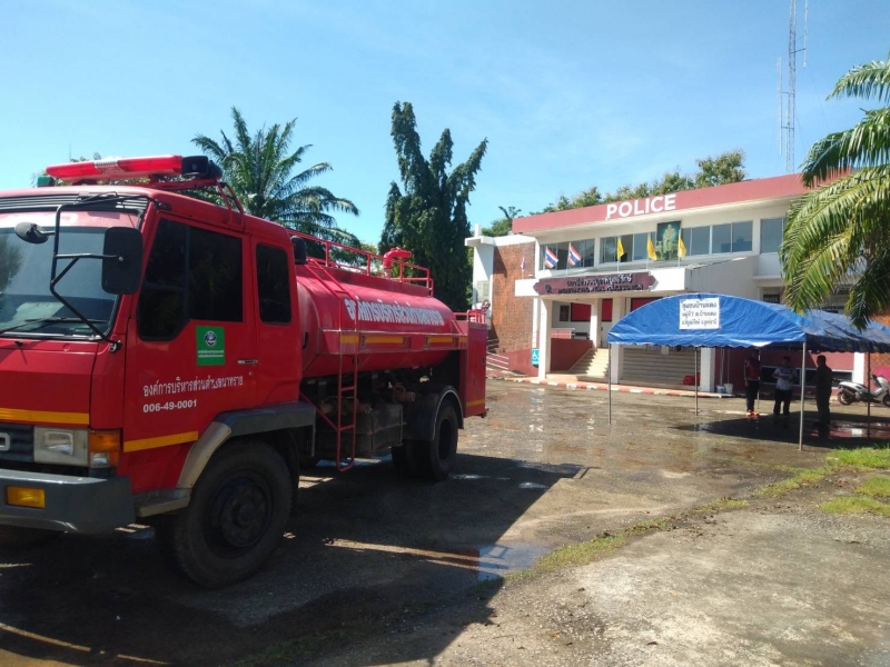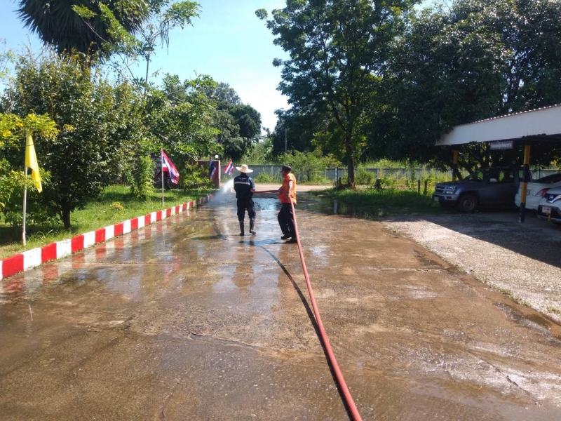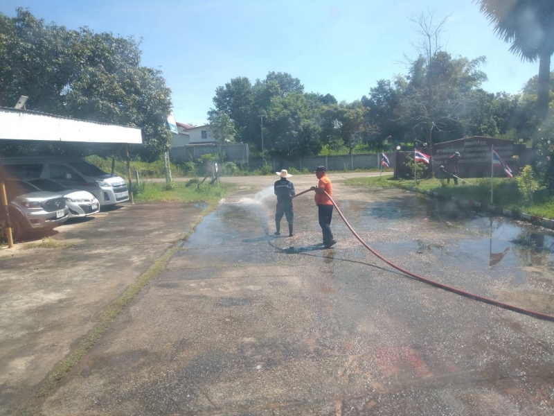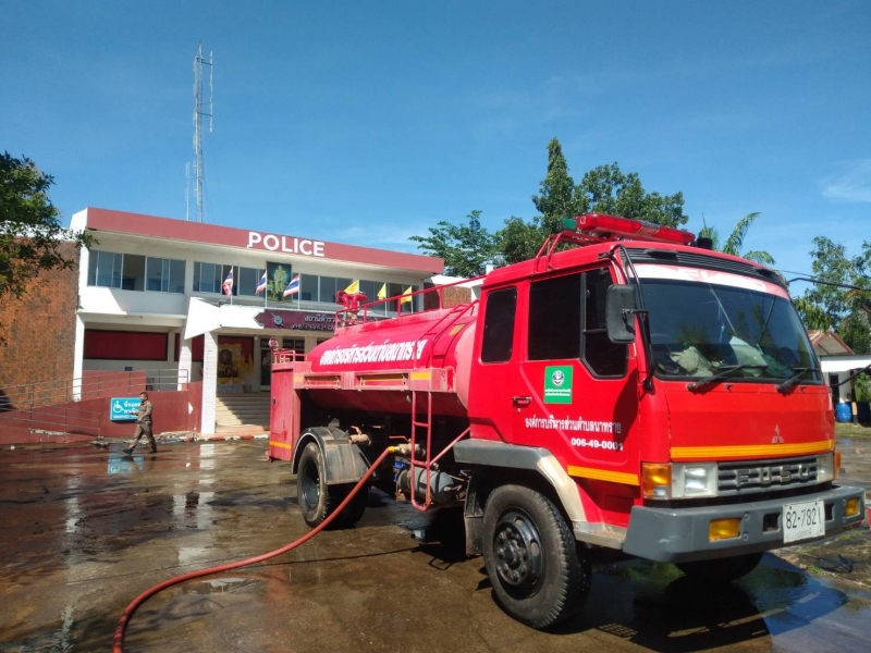 งานป้องกันฯ สนับสนุนรถดับเพลิงฉีดล้างลานปูน หน้าสภ.พิบูลย์รักษ์ เพื่อจัดกิจกรรมวันตำรวจ