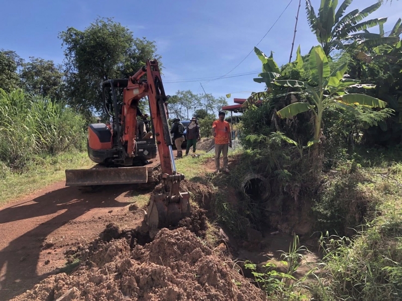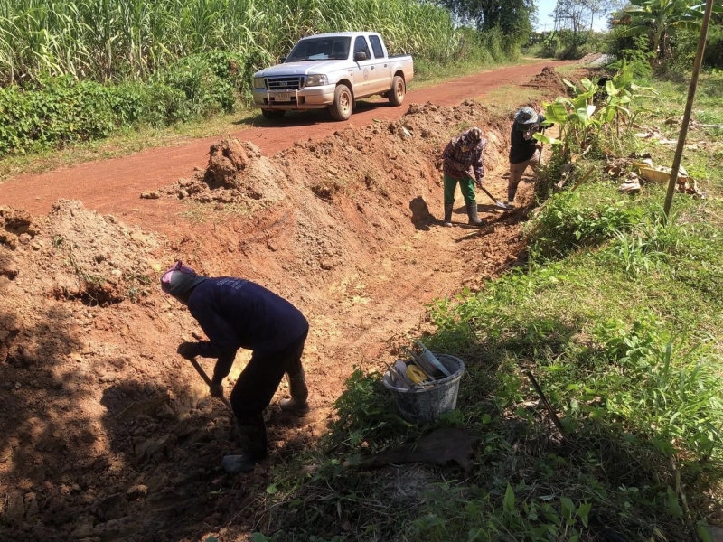 กองช่างลงพื้นที่สำรวจผู้รับจ้างดำเนินงาน โครงการวางท่อระบายน้ำ หมู่ที่ 6 (ถนนสายสามแยกสามท่อ ถึง หนองเลิงบ่อ)