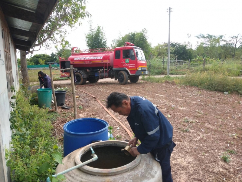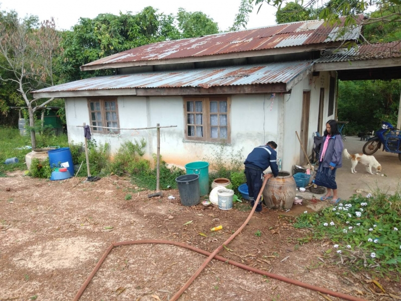 งานป้องกันฯ ออกให้บริการน้ำอุปโภค บ้านนาทรายหมู่ 9