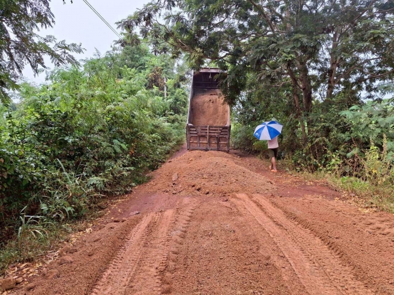 กองช่างลงพื้นที่สำรวจผู้รับจ้างดำเนินงาน โครงการปรับปรุงถนนลูกรัง หมู่ที่ 7 สายทางหน้าบ้านพ่อนาย ศรีมูลเขียว ไป บ้านกล้วย
