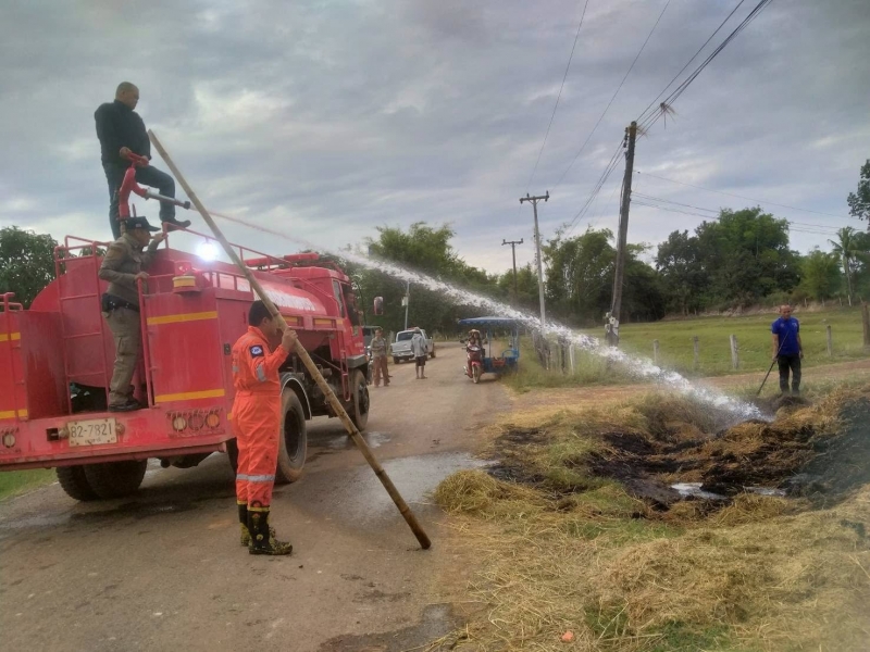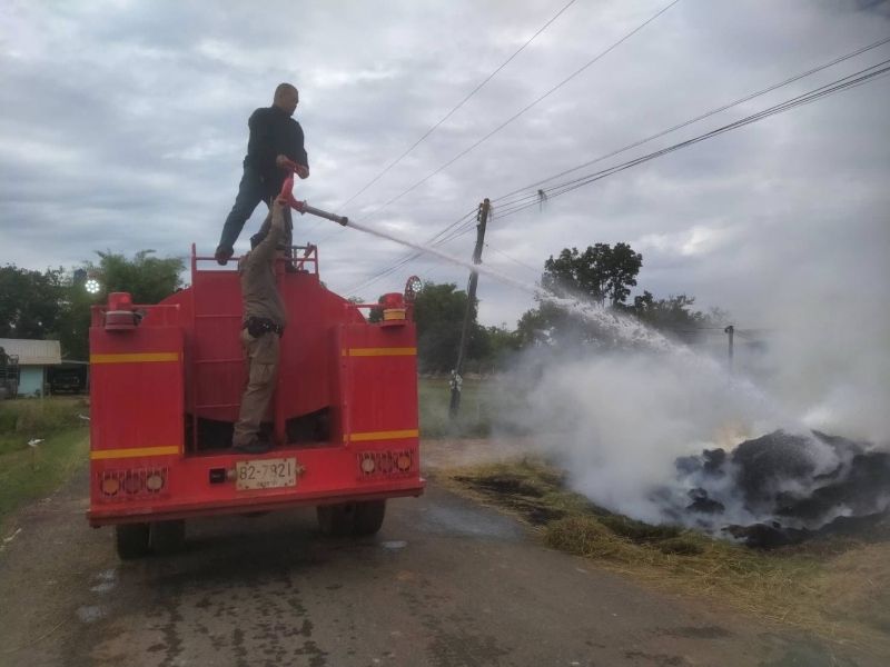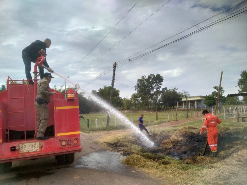งานป้องกันได้รับการประสานจาก อบต.บ้านแดง ให้ช่วยออกระงับเหตุไฟไหม้ฟางอัดแท่ง สอบถามเบื้องต้นเกิดจากการวางเพลิงจากผู้เสพสารเสพติด