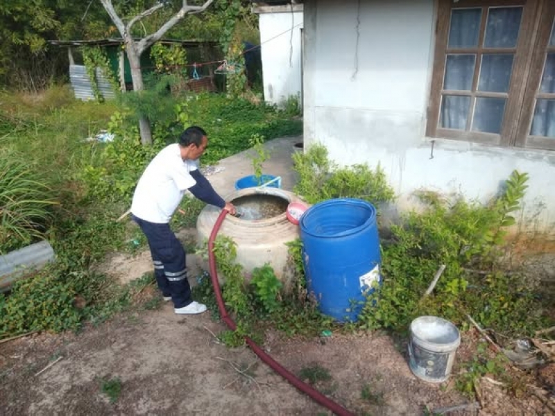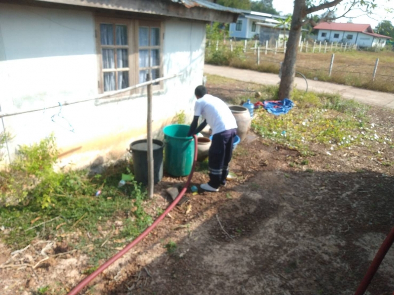 งานป้องกันฯ ออกให้บริการน้ำอุปโภค บ้านนาทรายหมู่ 9