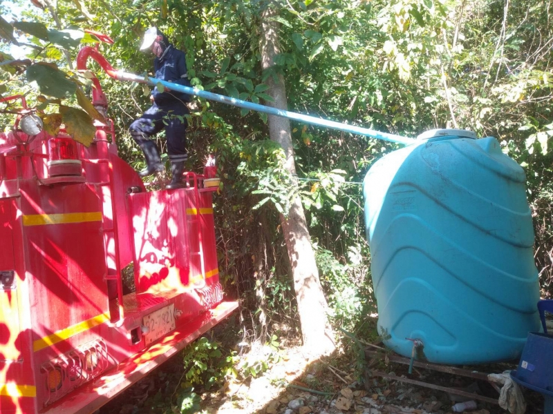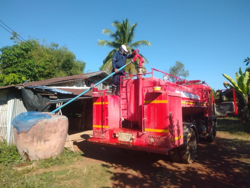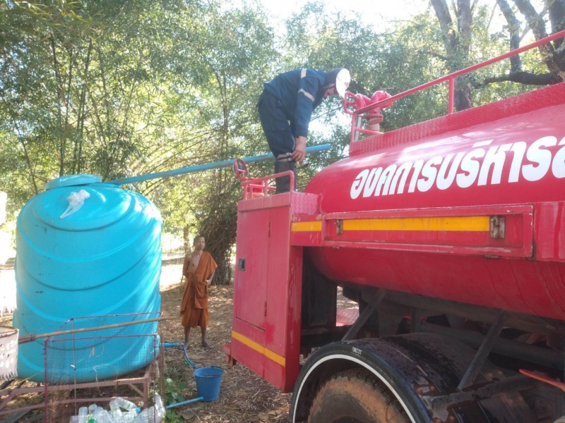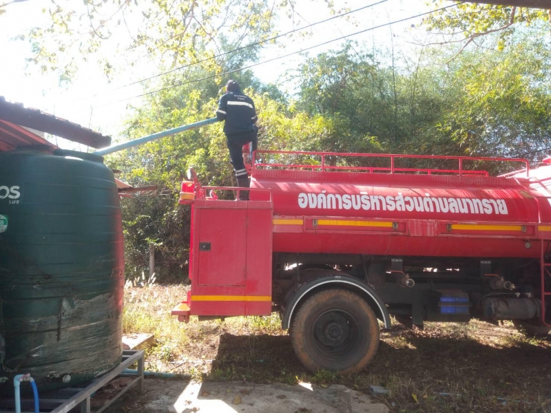 งานป้องกันฯ ออกให้บริการน้ำอุปโภค บ้านนาทรายหมู่ 9 และวัดนิโครธารามบ้านนาทรายหมู่ 1