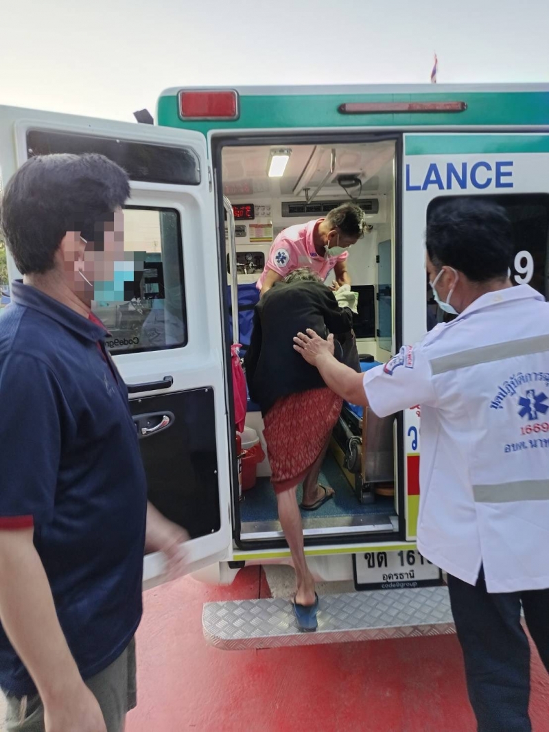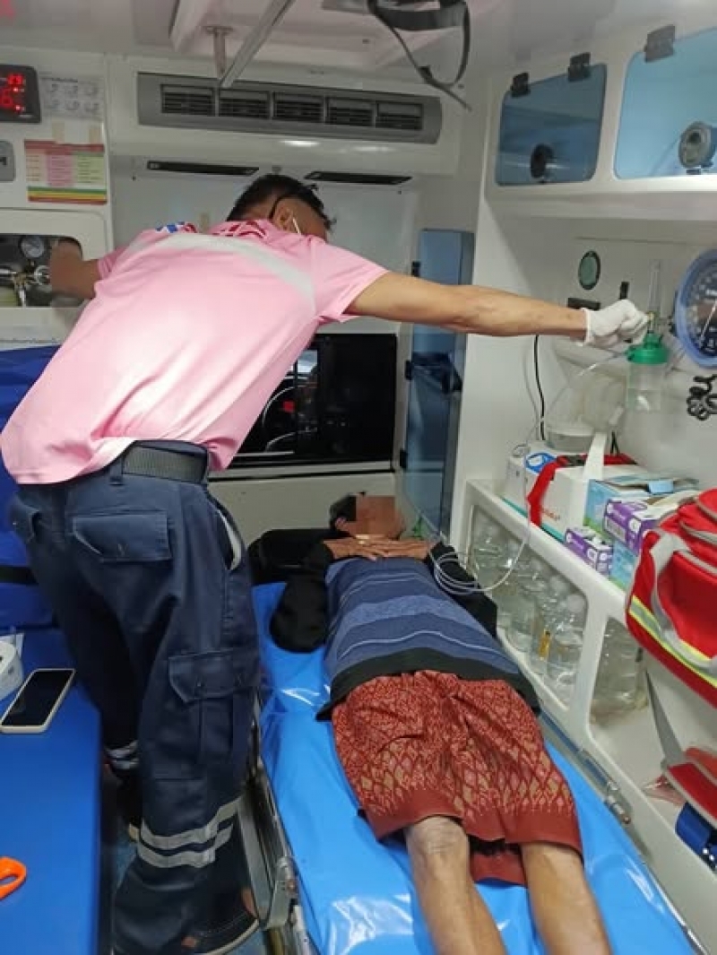 ศูนย์บริการแพทย์ฉุกเฉิน อบต.นาทราย ได้รับแจ้งจากศูนย์สั่งการให้ ออกรับผู้ป่วยฉุกเฉิน ที่รพ.สต.ถ่อนนาเพลิน พบเป็นหญิง1ราย อายุ79ปี มาด้วยอาการเหนื่อยอ่อนเพลีย/หายใจไม่สะดวก กู้ชีพอบต.นาทรายปฐมพยาบาลเบื้องต้น นำส่งรพ.พิบูลย์รักษ์เป็นที่เรียบร้อย