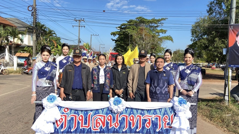 นางสาววาสนา ดำโดด ปลัดองค์การบริหารส่วนตำบลนาทราย พร้อมด้วยพนักงานส่วนตำบล และกำนันผู้ใหญ่บ้าน ร่วม เข้าร่วมขบวนแห่ของดีพิบูลย์รักษ์ ในงานนมัสการหลวงปู่พิบูลย์ และประเพณีโคมลมลอยฟ้า ผ้ามัดหมี่ย้อมคราม อำเภอพิบูลย์รักษ์ ประจำปี 2568