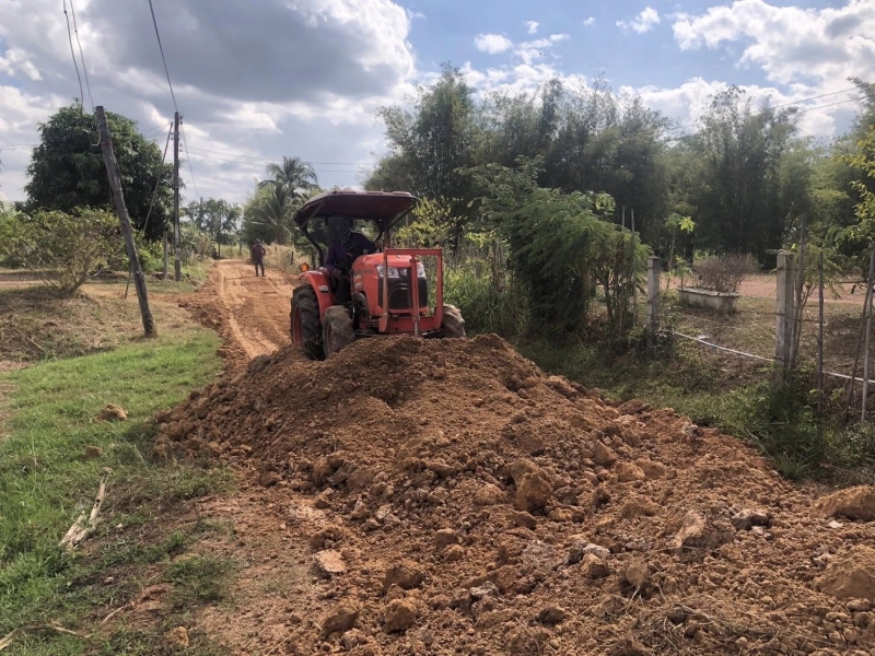 กองช่างออกพื้นที่ตรวจสอบผู้รับจ้างที่เข้าดำเนินงานโครงการซ่อมแซมถนนลูกรังเพื่อการเกษตร หมู่ที่ 4