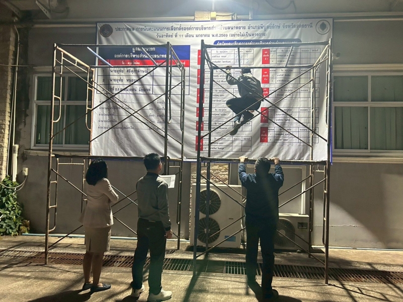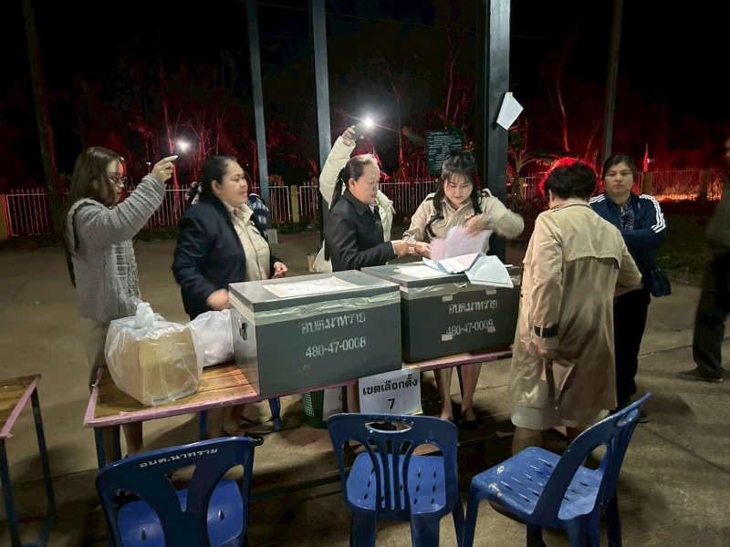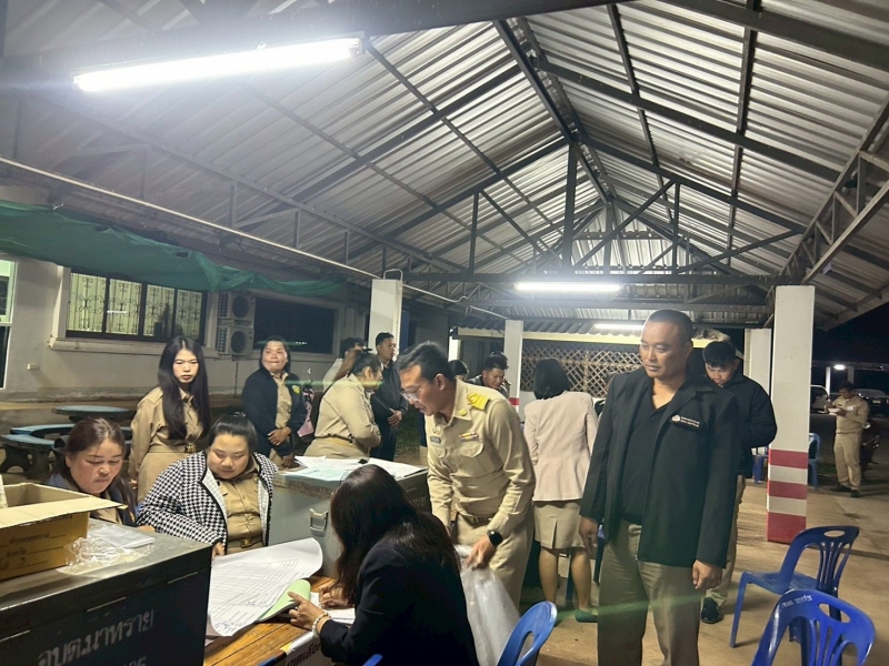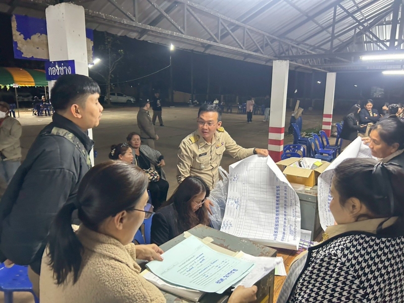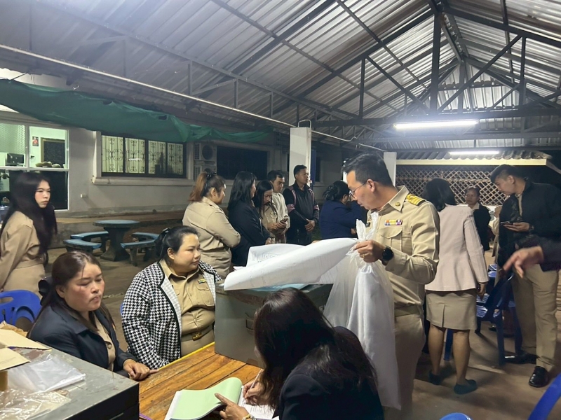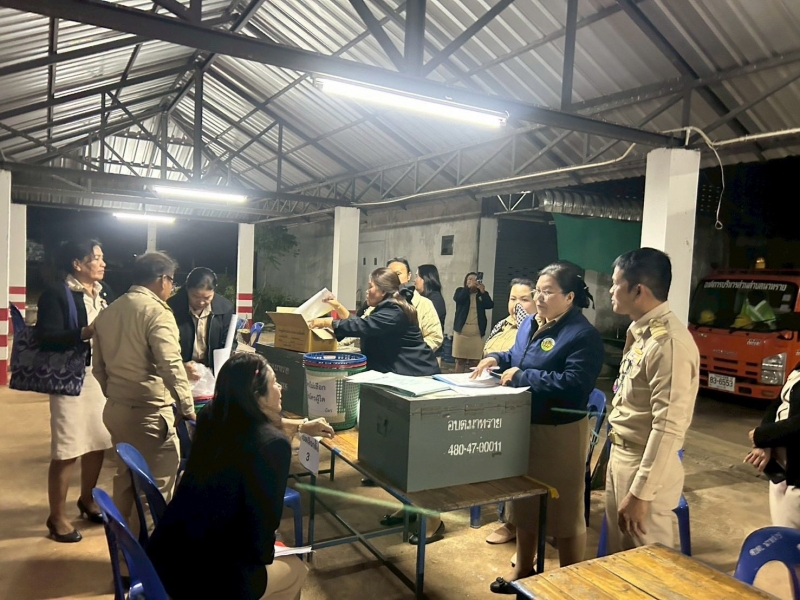นางสาววาสนา ดำโดด ผู้อำนวยการกานเลือกตั้งประจำองค์การบริหารส่วนตำบลนาทราย พร้อมด้วยคณะกรรมการการเลือกตั้งประจำองค์การบริหารส่วนตำบลนาทราย รับมอบหีบบุตรเลือกตั้ง ทั้ง 11 เขตเลือกตั้ง
