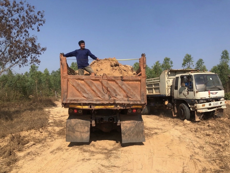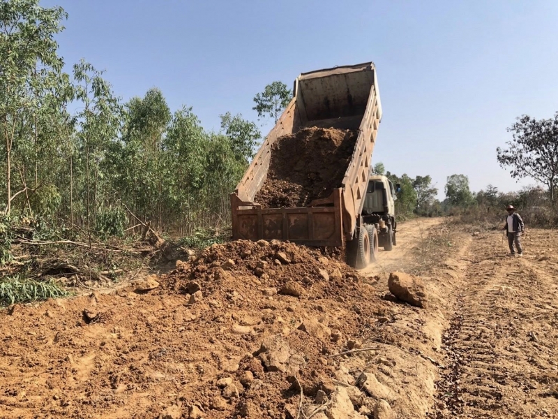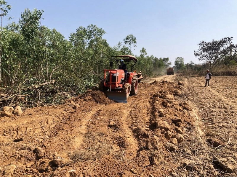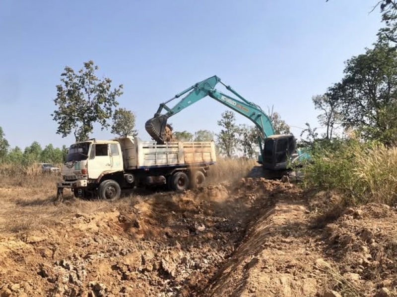 กองช่างออกพื้นที่ตรวจสอบผู้รับจ้างที่เข้าดำเนินงานโครงการบุกเบิกกรุยทางถนนใหม่ หมู่ที่ 7 สายทางแยกคำบอน ถึง บ้านนายอุดร สีระผัน
