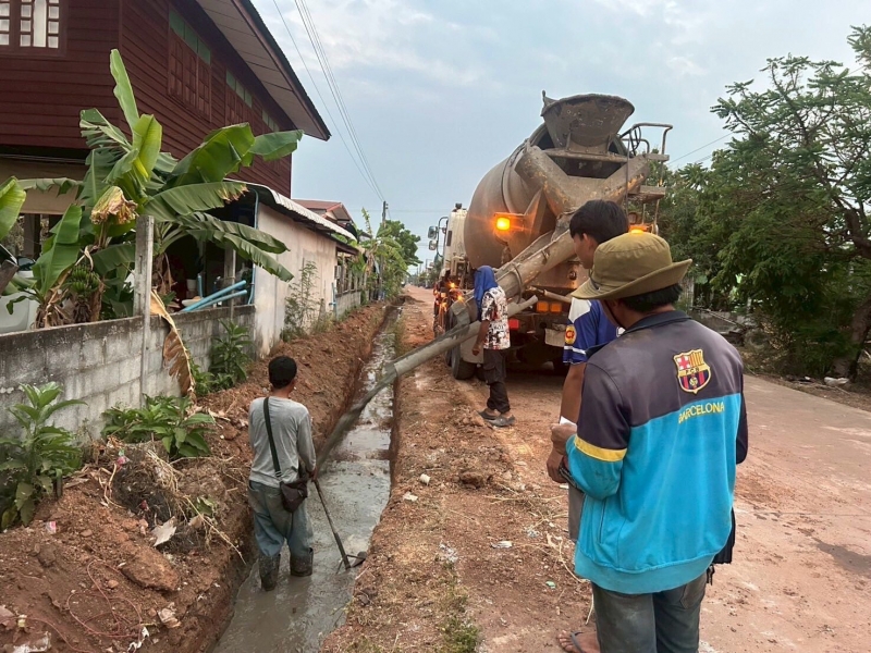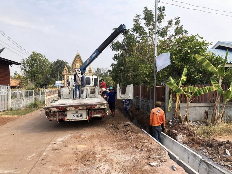 กองช่างและคณะกรรมการออกพื้นที่ตรวจรับโครงการวางรางระบายน้ำสำเร็จรูประบบแรงดึง หมู่ที่ 7 สายทางบ้านแม่บานเย็น บุญแซม ถึง วัดมงคลสวัสดิ์
