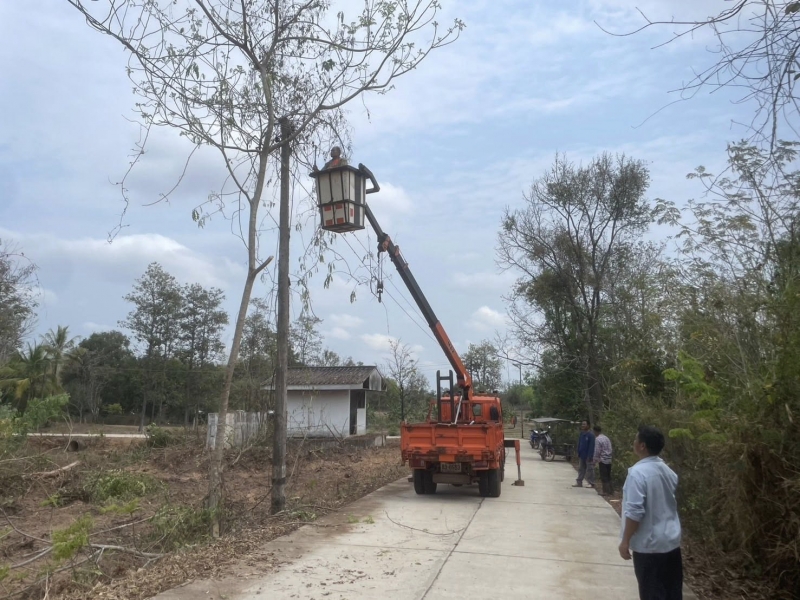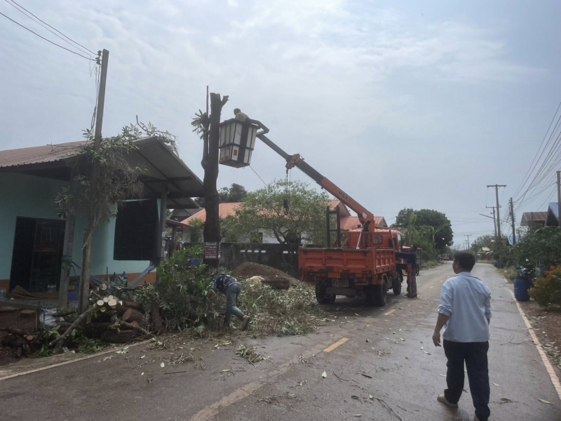 กองช่างออกพื้นที่ตัดต้นไม้ออกจากสายไฟและหลังคาบ้านประชาชน บ้านหนองไผ่หมู่ที่ 8