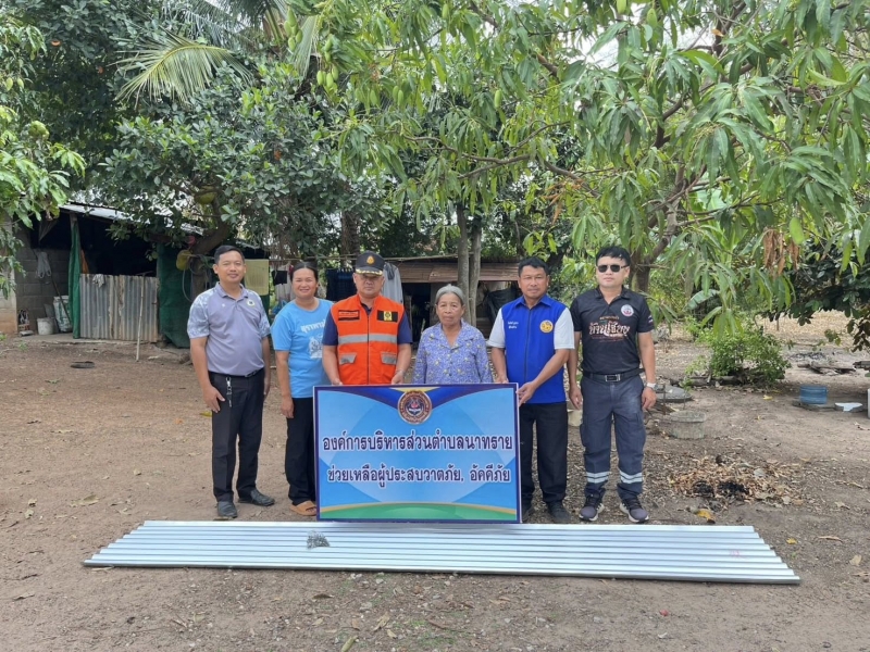 งานป้องกันฯ นำโดยคณะผู้บริหารได้มอบวัสดุซ่อมแซม เพื่อช่วยเหลือผู้ได้รับความเดือดร้อนจากเหตุวาตภัย ครั้งที่1 ประจำปีงบประมาณ 2569