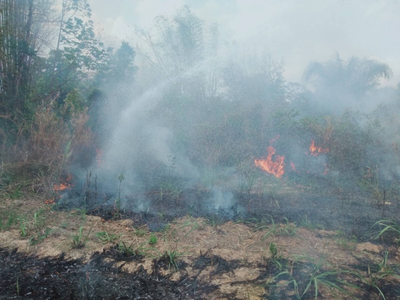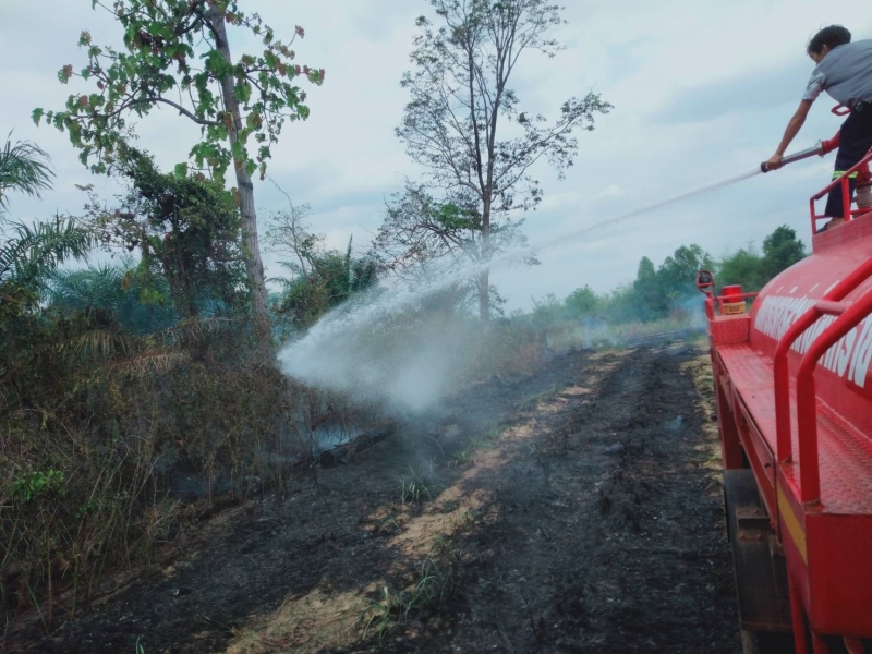 งานป้องกันฯ ได้รับแจ้งเหตุไฟไหม้ เวลา 14.00 น. และออกระงับเหตุไฟไหม้ป่าอ้อย และสวนปาล์ม พื้นที่บ้านมีชัยพัฒนา หมู่ 11 ระงับเหตุแล้วเสร็จ เวลา 15.30 น.