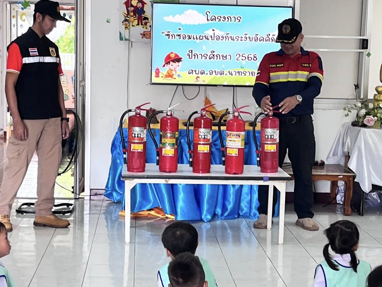 ศพด.อบต.นาทราย จัดกิจกรรมโครงการ “ซักซ้อมแผนป้องกันระงับอัคคีภัยปีการศึกษา 2568 โดยมีงานป้องกัน อบต.นาทราย ร�...