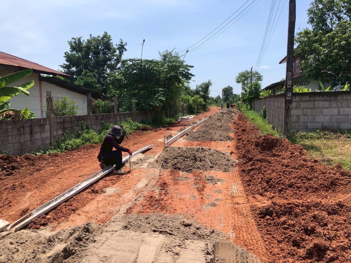 กองช่างลงพื้นที่สำรวจผู้รับจ้างดำเนินงานโครงการก่อสร้างถนนคอนกรีตเสริมเหล็ก หมู่ที่ 7 สายทางข้าง ศพด.วัด...