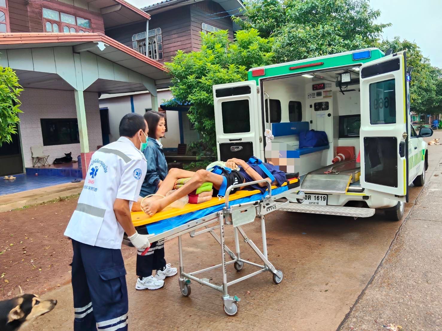 ศูนย์ปฏิบัติการการแพทย์ฉุกเฉิน อบต.นาทรายได้รับแจ้งเหตุจากศูนย์สั่งการให้ออกรับผู้บาดเจ็บจากหกล้มเองท...