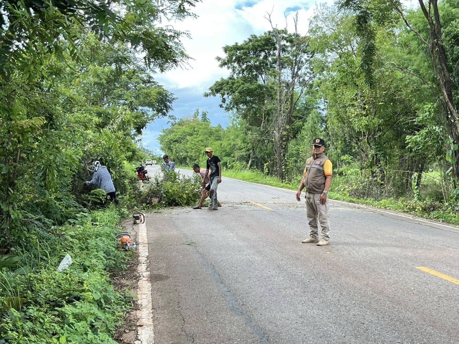 งานป้องกันฯ ร่วมกับกู้ชีพ อบต.นาทราย ออกอำนวยความสะดวกด้านจราจร ตัดต้นไม้ล้มทับถนนหลัก เส้นทาง อ.หนองหาน-�...
