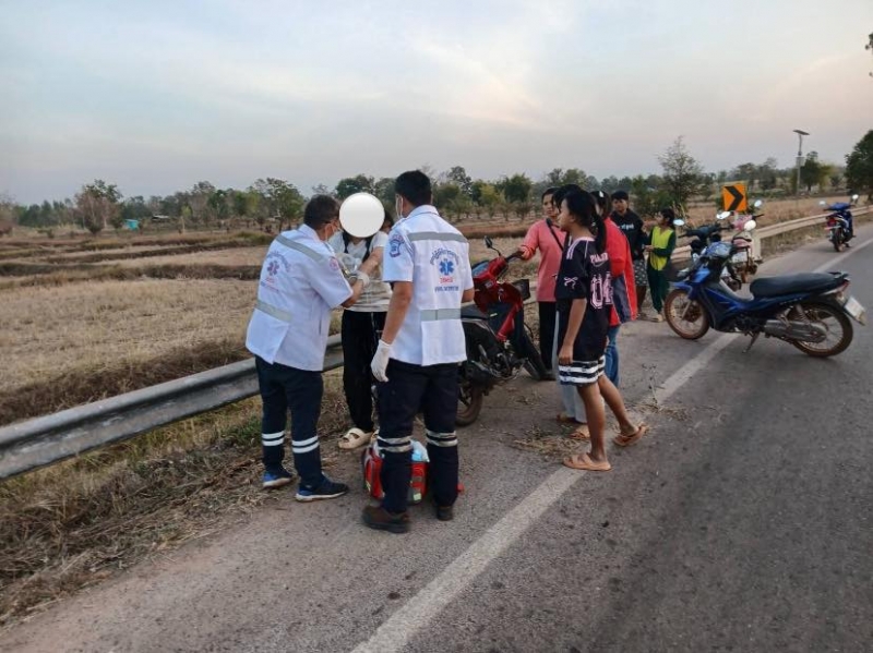 ศูนย์ปฏิบัติการการแพทย์ฉุกเฉิน อบต.นาทราย ได้รับแจ้งเหตุจากศูนย์สั่งการ ว่ามีอุบัติเหตุจากMCล้มเอง ทางโค้ง บ.ถ่อนนาเพลิน ม.10 ต.นาทราย พบเหตุ เป็นหญิง 2 ราย อายุ 14 ปีทั้งคู่