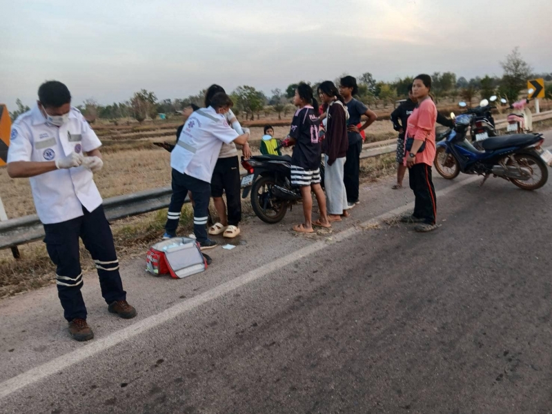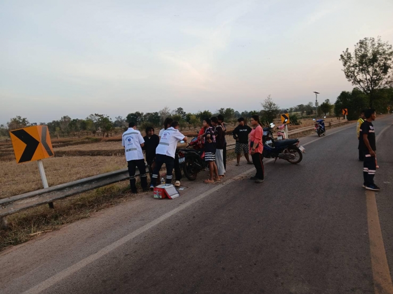 รายที่2 มีบาดแผลถลอกที่ใบหน้ากับหัวเข่า ไม่มีแขนขาผิดรูป ผู้บาดเจ็บไม่ประสงค์แยกรถ และอาการไม่หนัก กู้ชีพอบต.นาทรายได้ทำการปฐมพยาบาลเบื้องต้นและได้นำส่ง รพ.พิบูลย์รักษ์เป็นที่เรียบร้อย