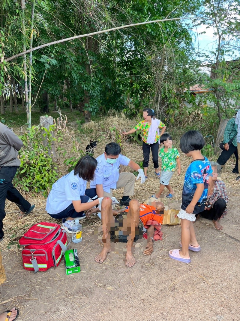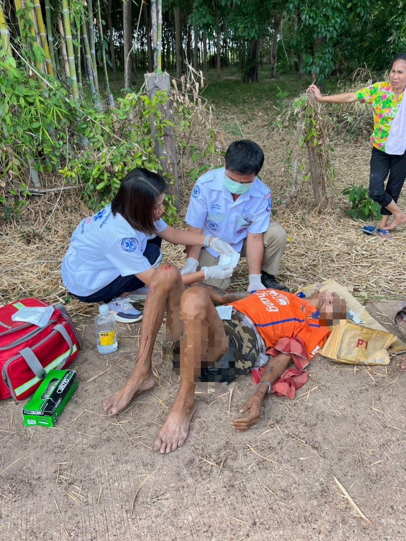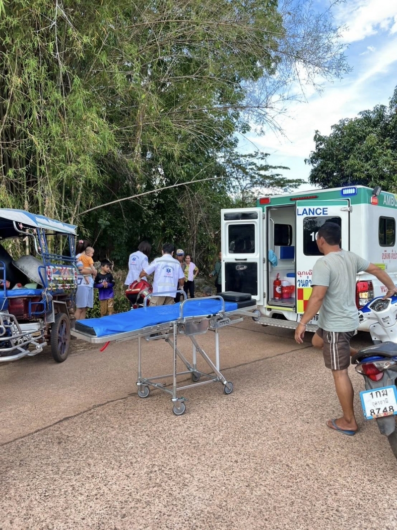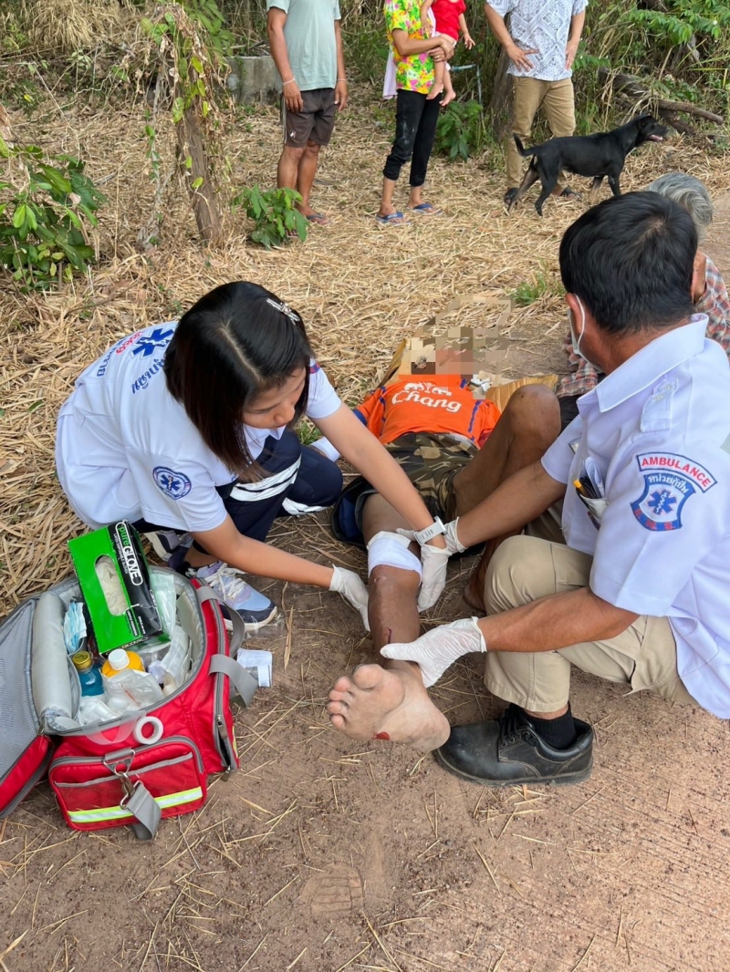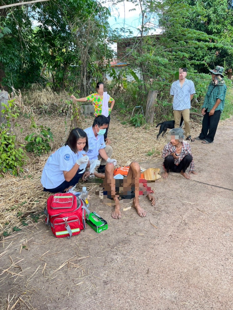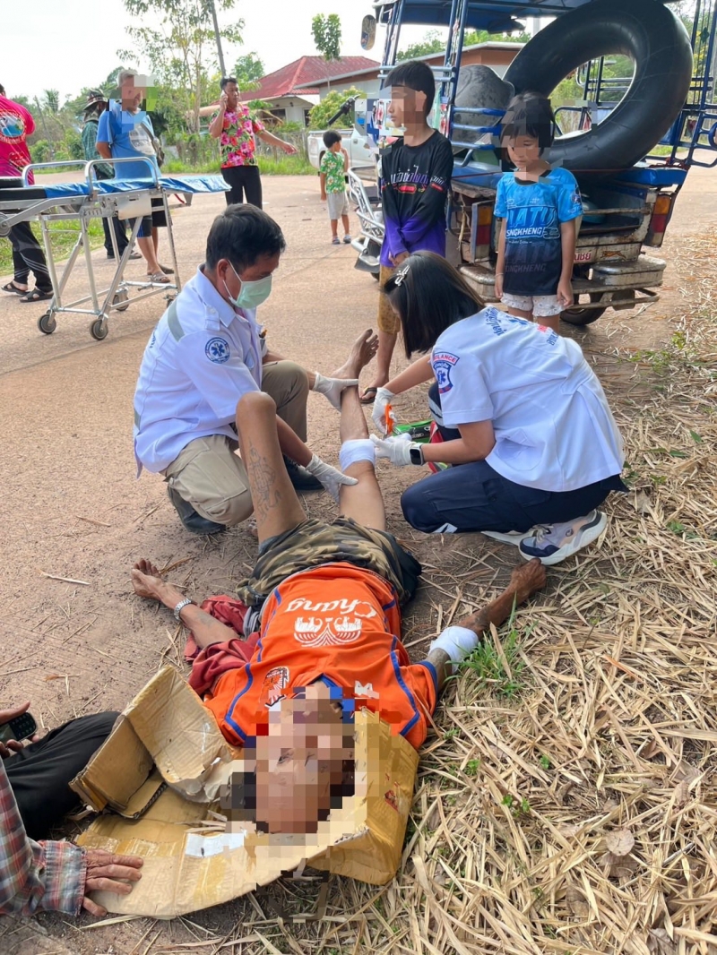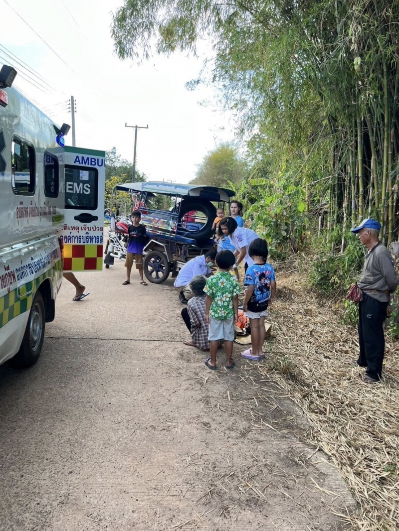 ศูนย์ปฏิบัติการการแพทย์ฉุกเฉิน อบต.นาทราย ได้รับแจ้งจากศูนย์สั่งการ ให้ออกรับผู้บาดเจ็บจาก สามล้อเครื่อง+กระบะ ที่หมู่8 บ้านหนองไผ่ ใกล้บ้านผู้ใหญ่บ้าน ต.นาทราย พบ หญิง1ราย,ชาย1รายอายุประมาณ80ปี ทั้ง2ราย มีบาดแผลถลอกที่แขนขวา,หัวเข่าขวาและคาง ผู้ป่วยรู้สึกตัวดี ถามตอบได้ (มีอาการมึนเมาร่วมทั้ง2ราย)กู้ชีพอบต.นาทรายได้ทำการปฐมพยาบาลเบื้องต้น และนำส่งรพ.พิบูลย์รักษ์เป็นที่เรียบร้อย