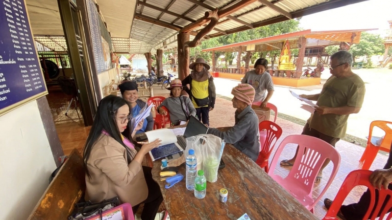 งานจัดเก็บรายได้ ออกเก็บค่าภาษีที่ดินและสิ่งปลูกสร้าง และค่าขยะมูลฝอย หมู่ที่ 4,5 ณ วัดศรีสมพร บ้านนานกหงส์