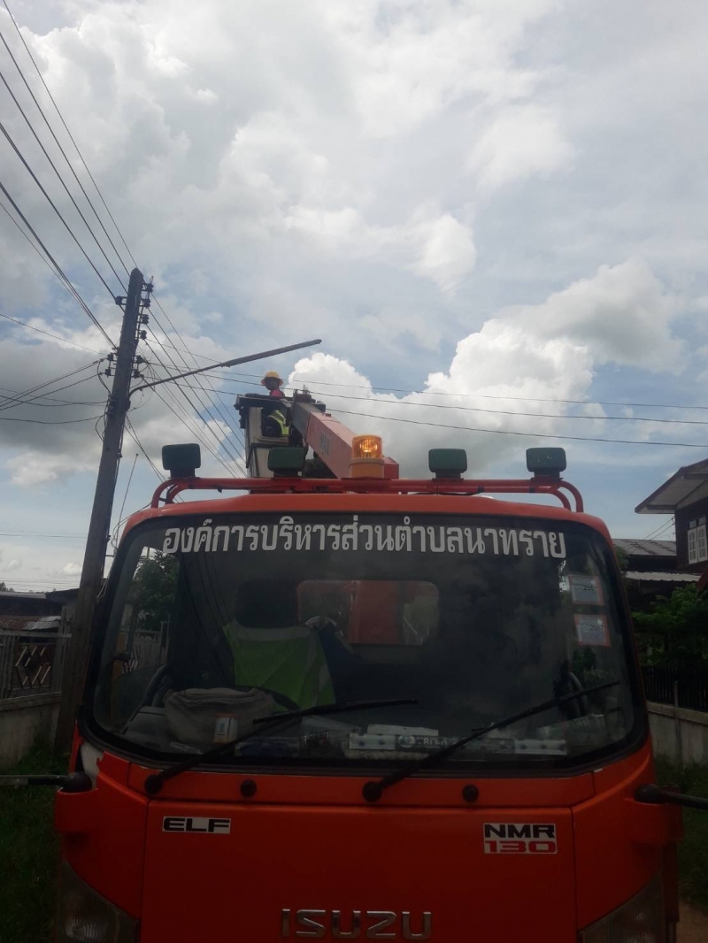 กองช่าง ลงพื้นที่ซ่อมแซมไฟส่องสว่างบริเวณ หมู่ที่ 2 ,6 ,10 ตำบลนาทราย