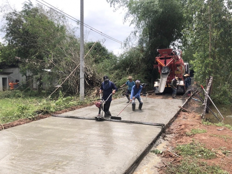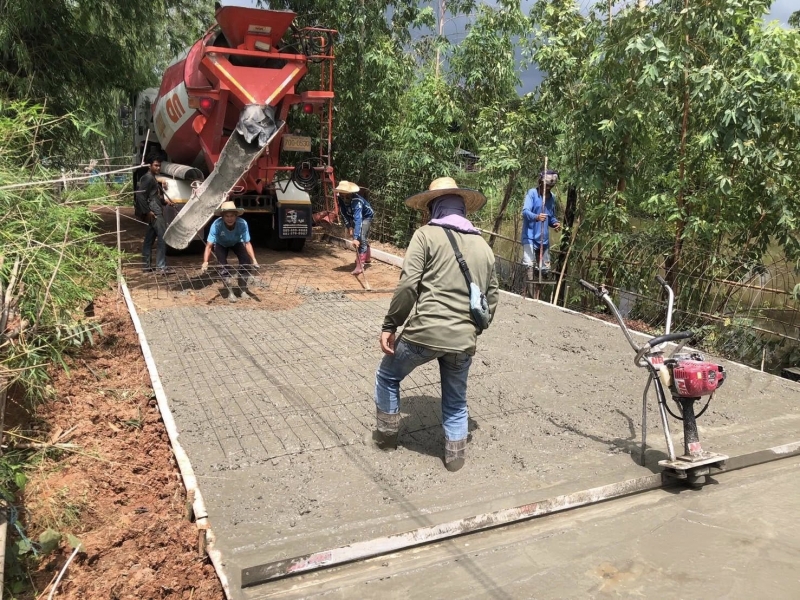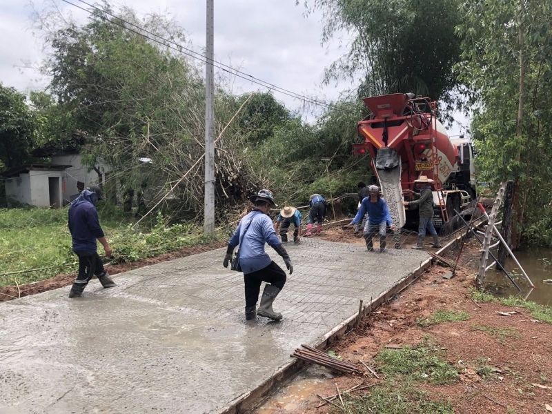 กองช่างลงพื้นที่ตรวจสอบผู้รับจ้างเข้าดำเนินงานโครงการก่อสร้างถนนคอนกรีตเสริมเหล็ก สายทางบ้านนางจงจิตร เชียงล้ำ ถึง โรงเรียนนาทรายวิทยาคม