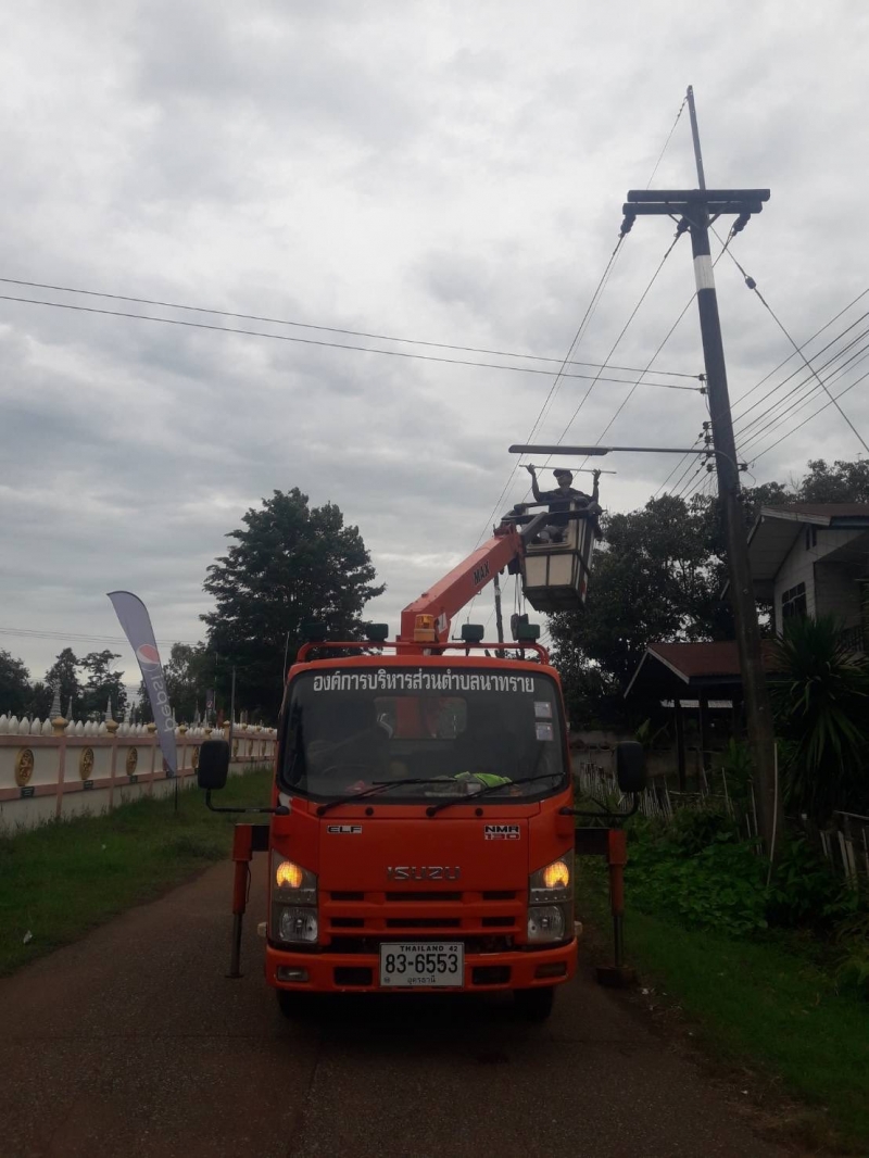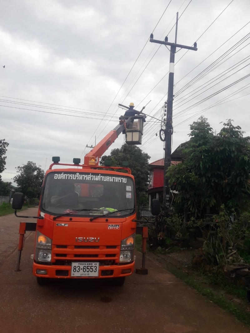 กองช่าง ลงพื้นที่ซ่อมแซมไฟส่องสว่างบริเวณ หมู่ที่ 4 , 5 ตำบลนาทราย