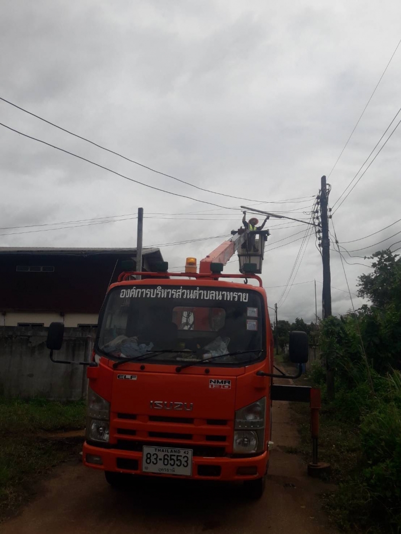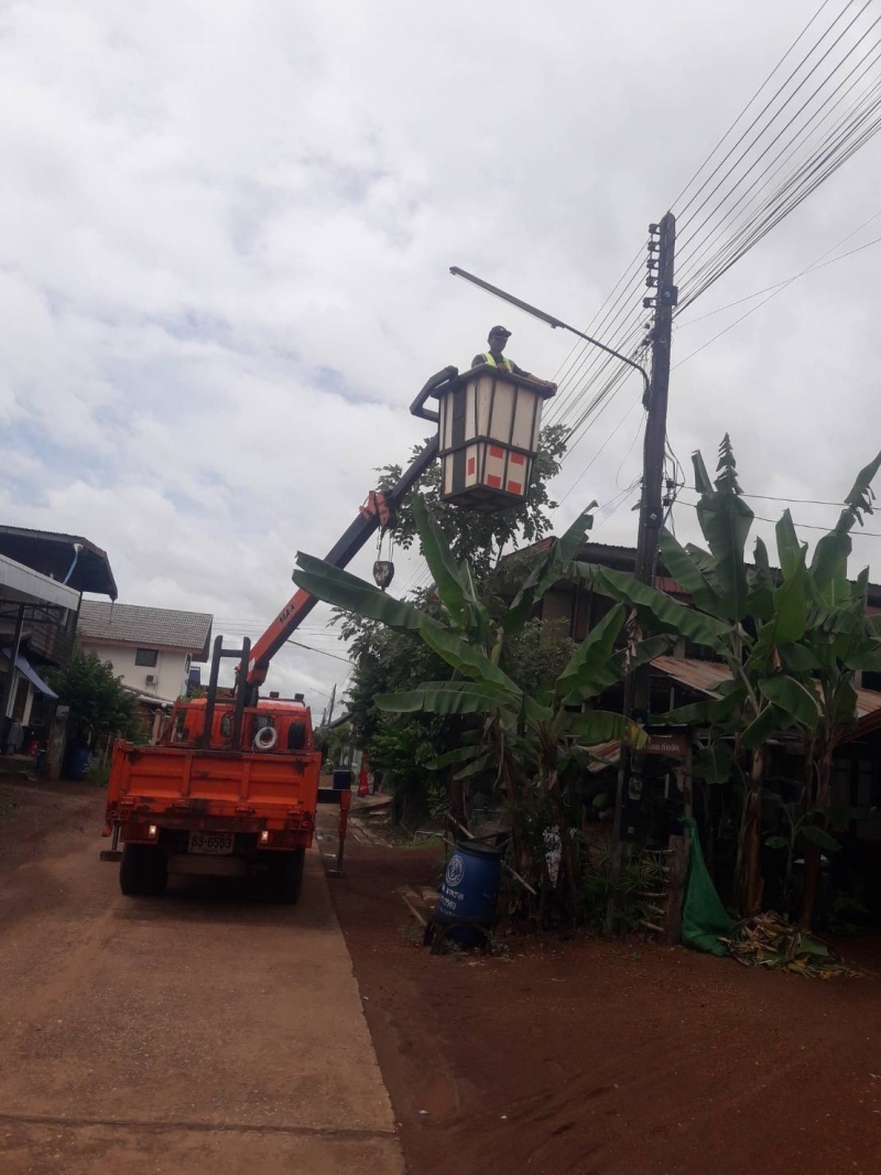 กองช่าง ลงพื้นที่ซ่อมแซมไฟส่องสว่างบริเวณ หมู่ที่ 8, 10 ตำบลนาทราย