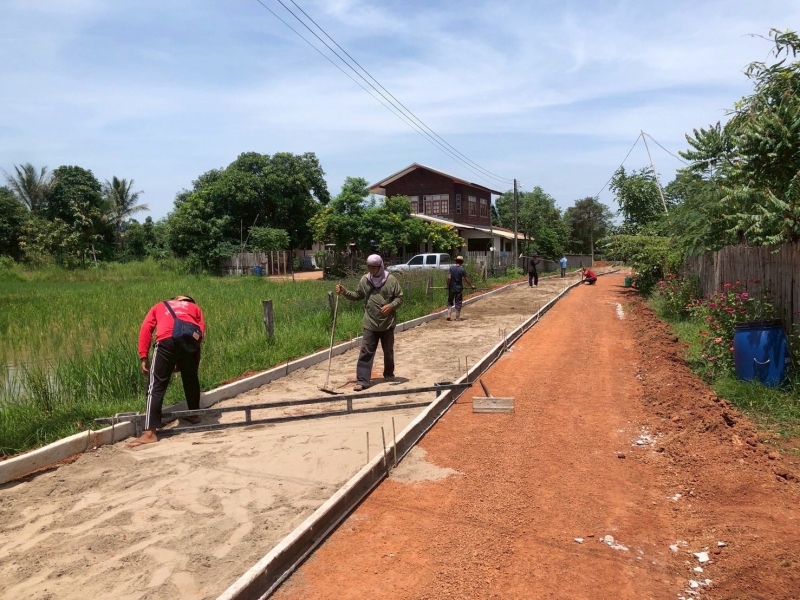 กองช่างลงพื้นที่สำรวจผู้รับจ้างดำเนินงานโครงการก่อสร้างถนนคอนกรีตเสริมเหล็ก หมู่ที่ 7 สายทางข้าง ศพด.วัดมงคลสวัสดิ์ ถึง บ้านนายด้วง สีวันนู