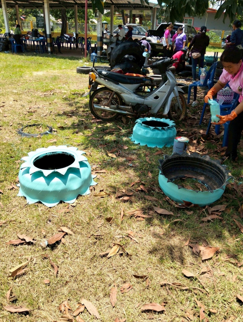 4.ฝึกทำกระถางจากยางรถยนต์ ณ องค์การบริหารส่วนตำบลนาทราย
