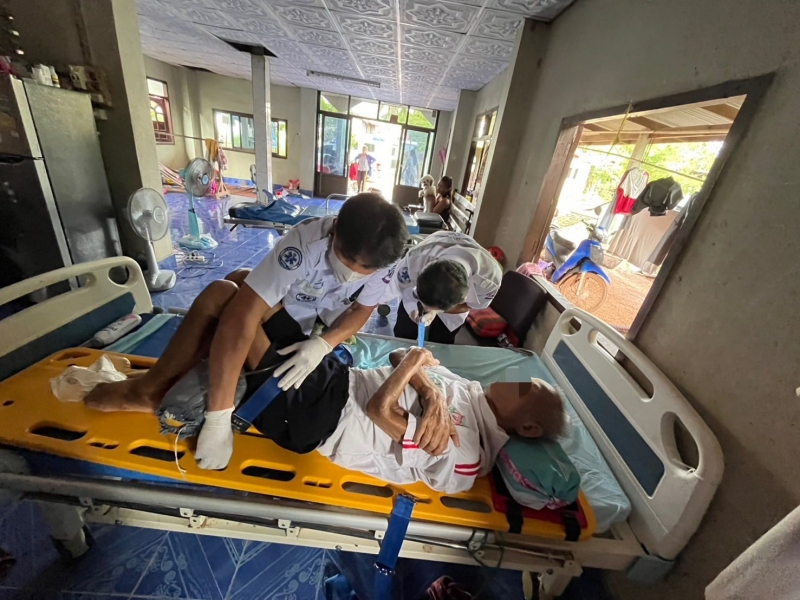 ศูนย์บริการแพทย์ฉุกเฉิน อบต.นาทราย ได้รับแจ้งจากศูนย์สั่งการ ให้ออกรับผู้ป่วยฉุกเฉิน ที่หมู่6 บ้านถ่อนนาเพลิน กู้ชีพออกตรวจสอบพบเป็นชาย1ราย อายุ80ปี มาด้วยอาการเหนื่อย,หายใจไม่สะดวก รู้สึกตัวดี กู้ชีพอบต.นาทรายปฐมพยาบาลเบื้องต้น และนำส่งรพ.พิบูลย์รักษ์เรียบร้อย