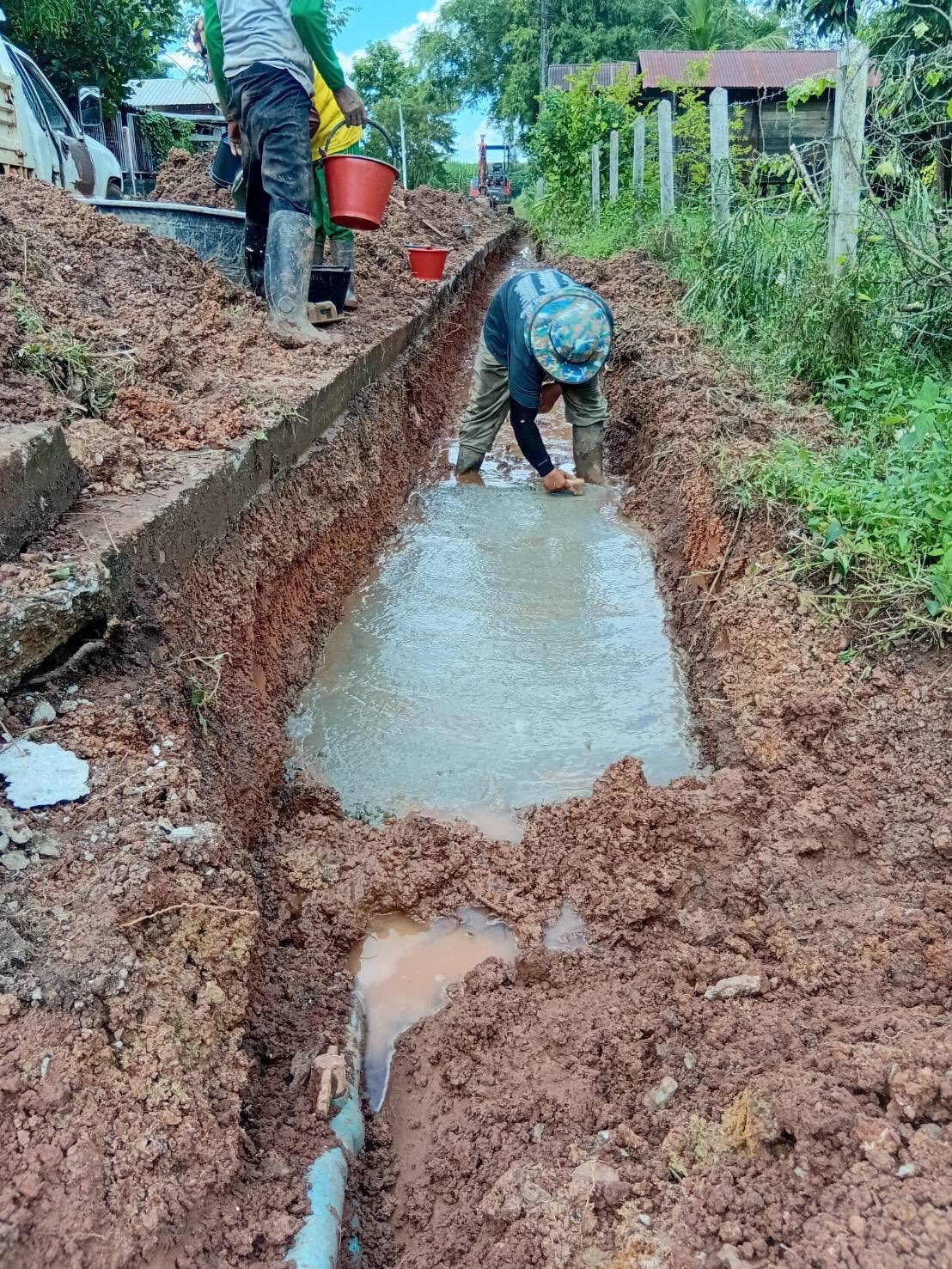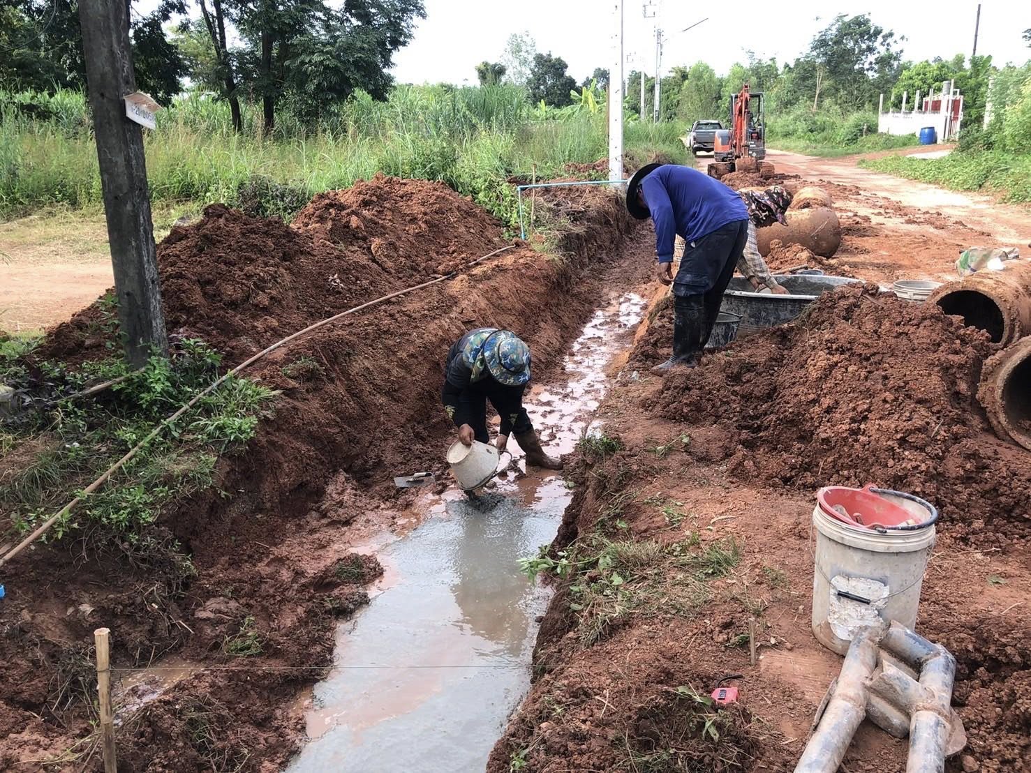 กองช่างลงพื้นที่สำรวจผู้รับจ้างดำเนินงาน โครงการวางรางระบายน้ำสำเร็จรูประบบแรงดึง หมู่ที่ 6 สายทางหน้าว�...