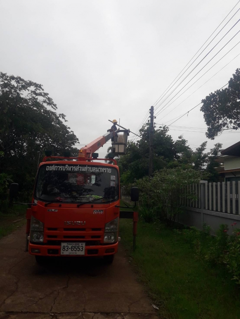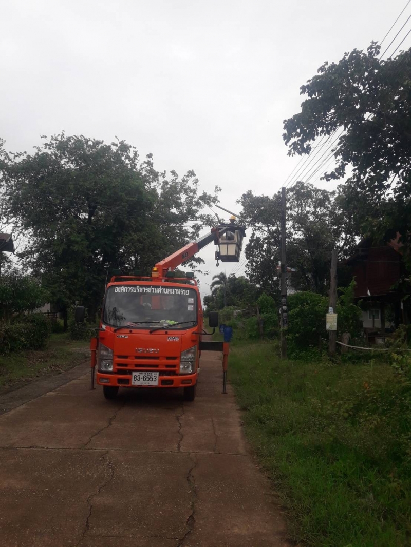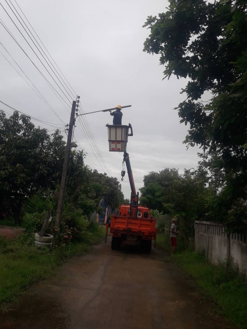กองช่าง ลงพื้นที่ซ่อมแซมไฟส่องสว่างบริเวณ หมู่ที่ 4 , 5 ตำบลนาทราย