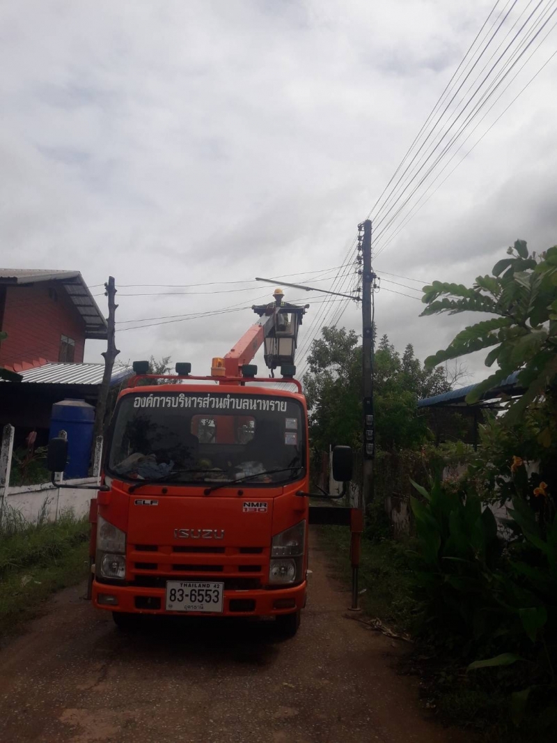 กองช่าง ลงพื้นที่ซ่อมแซมไฟส่องสว่างบริเวณ หมู่ที่ 8, 10 ตำบลนาทราย