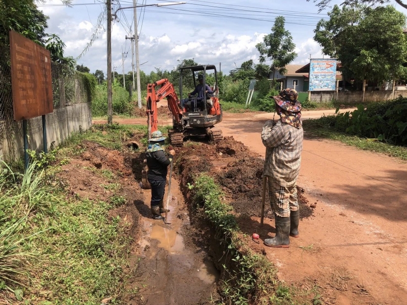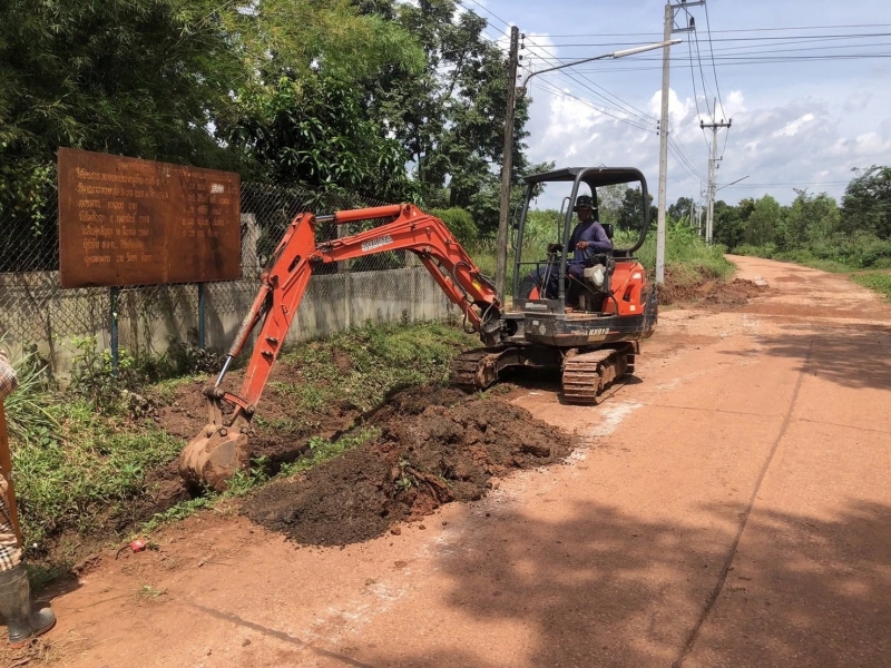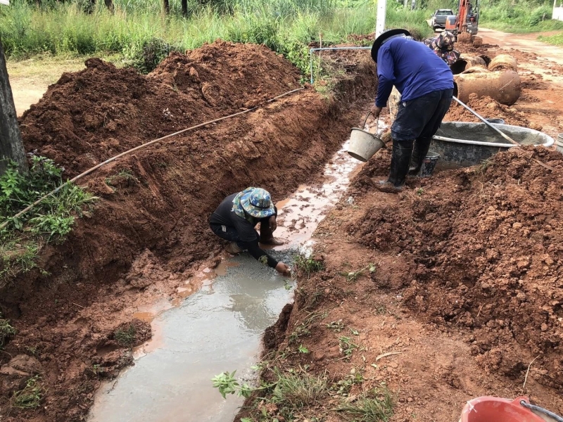 กองช่างลงพื้นที่สำรวจผู้รับจ้างดำเนินงาน โครงการวางรางระบายน้ำสำเร็จรูประบบแรงดึง หมู่ที่ 6 สายทางหน้าวัดมงคลสวัสดิ์ ถึง บ้านนางวันเพ็ญ เทือกมูล