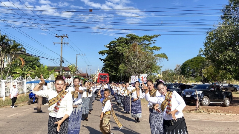 นางสาววาสนา ดำโดด ปลัดองค์การบริหารส่วนตำบลนาทราย พร้อมด้วยพนักงานส่วนตำบล และกำนันผู้ใหญ่บ้าน ร่วม เข้าร่วมขบวนแห่ของดีพิบูลย์รักษ์ ในงานนมัสการหลวงปู่พิบูลย์ และประเพณีโคมลมลอยฟ้า ผ้ามัดหมี่ย้อมคราม อำเภอพิบูลย์รักษ์ ประจำปี 2568