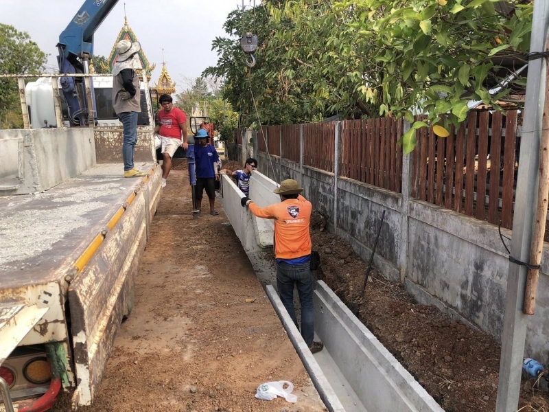 กองช่างและคณะกรรมการออกพื้นที่ตรวจรับโครงการวางรางระบายน้ำสำเร็จรูประบบแรงดึง หมู่ที่ 7 สายทางบ้านแม่บานเย็น บุญแซม ถึง วัดมงคลสวัสดิ์