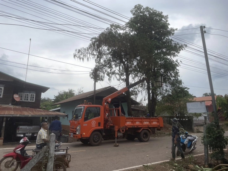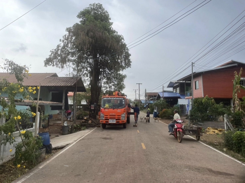 กองช่างออกพื้นที่ตัดต้นไม้ออกจากสายไฟและหลังคาบ้านประชาชน บ้านหนองไผ่หมู่ที่ 8