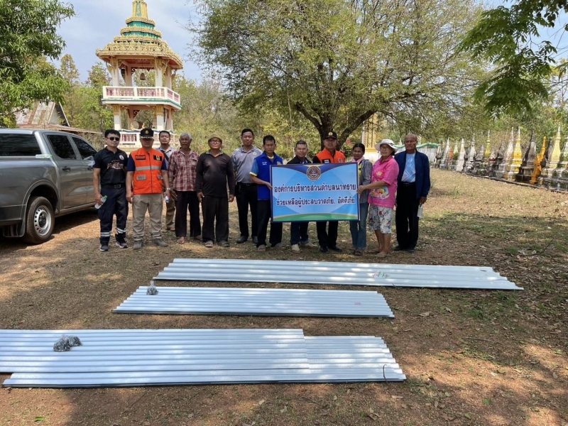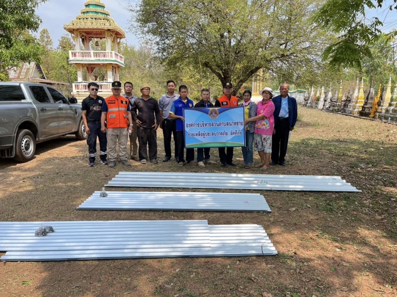 งานป้องกันฯ นำโดยคณะผู้บริหารได้มอบวัสดุซ่อมแซม เพื่อช่วยเหลือผู้ได้รับความเดือดร้อนจากเหตุวาตภัย ครั้งที่1 ประจำปีงบประมาณ 2569