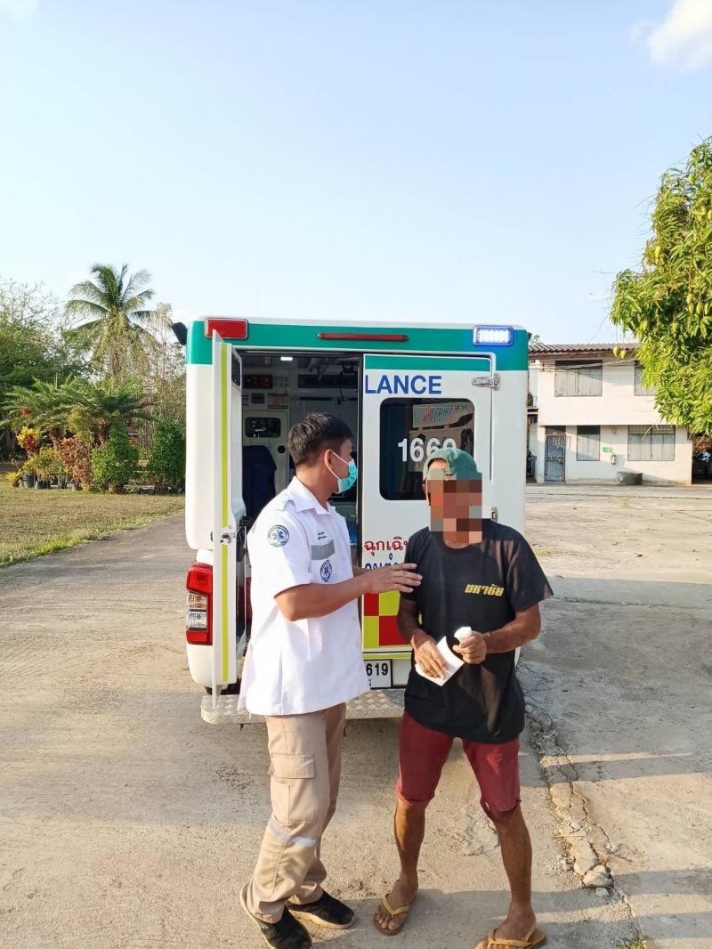 กู้ชีพอบต.นาทรายปฐมพยาบาลเบื้องต้น นำส่งรพ.พิบูลย์รักษ์เรียบร้อย